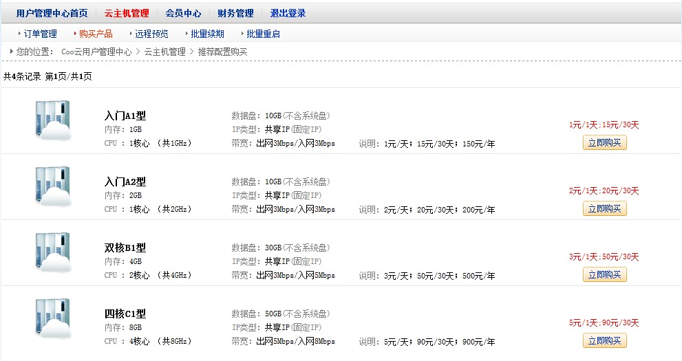 3、點擊 購買云主機,選擇需要的配置,點擊立即購買